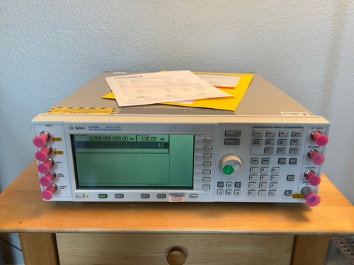 You are bidding on an Agilent E4438C 250 kHz - 3 GHz Vector Signal Generator with Option UNJ (Improved Spectral Purity - includes Option 1E5, High Stability Time Base). This unit will arrive with a fresh calibration performed by an ISO 17025 accredited lab.