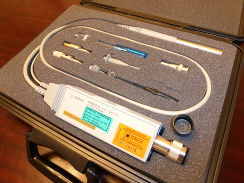 You are bidding on an Agilent / HP 41800A 5 Hz to 500 MHz Active Probe complete with case and accessories. The Agilent 41800A active probe provides high input impedance from 5 Hz to 500 MHz. It is a valuable tool when used with a network and spectrum analyzer for circuit signal analysis. The 41800A improves your circuit design and evaluation for audio, video, HF, and VHF bands. The low input capacitance offers probing with negligible circuit loading, making it effective for precise in-circuit measurements.