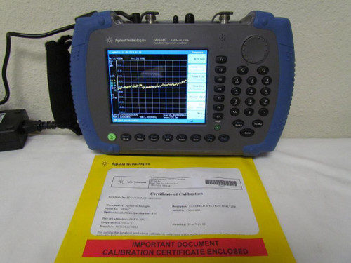 You are bidding on an Agilent N9344C 20 GHz Handheld RF Spectrum Analyzer with Options TG7 (Tracking Generator - 5 MHz to 7 GHz) and P20 (Preamplifier - 1 MHz to 20 GHz). This unit was recently calibrated by Agilent and comes with a certificate of calibration! It comes complete with all standard accessories (AC/DC adapter, battery, USB cable and tutorial CD) as well as a factory warranty from Agilent. If you are making measurements in the field, the Agilent N9344C handheld spectrum analyzer (HSA) makes your job easier. It's got the features you need for operating in tough field environments, and it's measurement performance gives you confidence the job’s been done right. The N9344C HSA lets you automate routine tasks to save time and ensure consistent results. Field testing just got easier with the Agilent N9344C up to 20 GHz. CURRENT LIST PRICE FOR THIS AGILENT N9344C WITH THIS OPTION CONFIGURATION IS 21K!