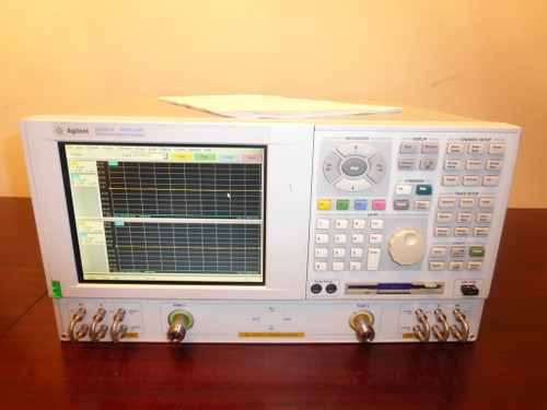 You are bidding on an Agilent E8357A 300kHz - 6GHz, 2 Port, 4 Reciever RF PNA Vector Network Analyzer with option 010 (Time Domain Capability) and 015 (Configurable Test Set). This unit will arrive with a fresh calibration with certificate performed by an ISO 17025 accredited lab. The E8357A Vector Network Analyzer is a member of the PNA Series network analyzer platform and provides the combination of speed and precision for the demanding needs of today's component test requirements. The PNA Series meets this testing challenge by providing the right combination of fast sweep speeds, wide dynamic range, low trace noise and flexible connectivity. The E8357A provides TRL/LRM calibration (four-receiver enabled) for in-fixture and on-wafer devices, standard bias-tees for active devices and standard direct receiver access for extended dynamic range. Powerful automation and self-help tools make the instrument well suited for both R&D and manufacturing. The PNA Series features sixteen independent measurement channels and a built-in hard drive. THIS INSTRUMENT WITH THIS OPTION CONFIGURATION HAS A LIST PRICE OVER $60,000 USD!