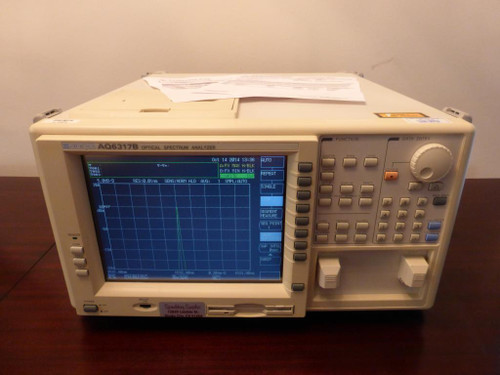 You are bidding on an ANDO AQ6317B 600-1750 nm 50 GHz Optical Spectrum Analyzer. It will arrive with a fresh calibration including test data! The AQ6317B is an advanced optical spectrum analyzer for a wide range of applications, including light source evaluation, measurement of loss wavelength characteristics in optical devices, and waveform analysis of WDM (Wavelength Division Multiplexing) systems. Especially at C-band and L-band, the unit achieves high wavelength accuracy and wavelength linearity, and can evaluate optical devices for WDM. Analysis functions make operation and expandability simple. The AQ6317B contains the latest Ando technology for optical spectrum analyzers. A reference instrument for the next generation. In comparison with the former model, the wavelength accuracy of the AQ6317B has been improved to ±20pm, and it is specified as for the L-band as well WDM analysis function and notch width analysis function are improved, and multi-channel NF analysis function and optical filter analysis function are newly added. Lt has become much easier to use with other improvements, such as sweep speed-up.